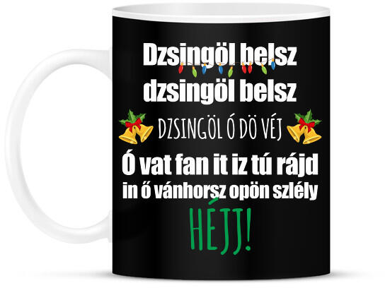 printfashion Dzsingöl belsz karácsonyi póló - Bögre - Fekete (9386635)