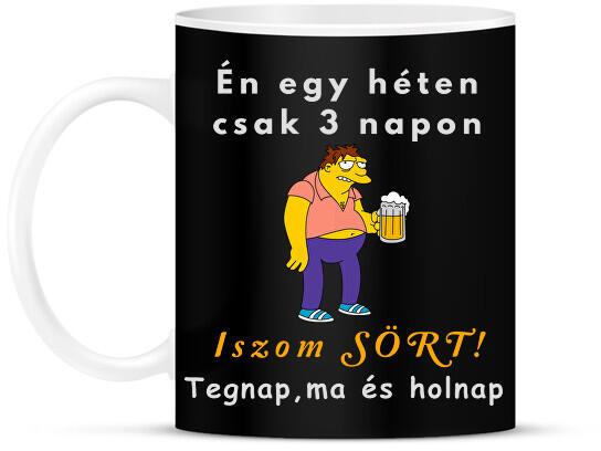 printfashion egyhéten három napon iszom sört - Bögre - Fekete (1703730)