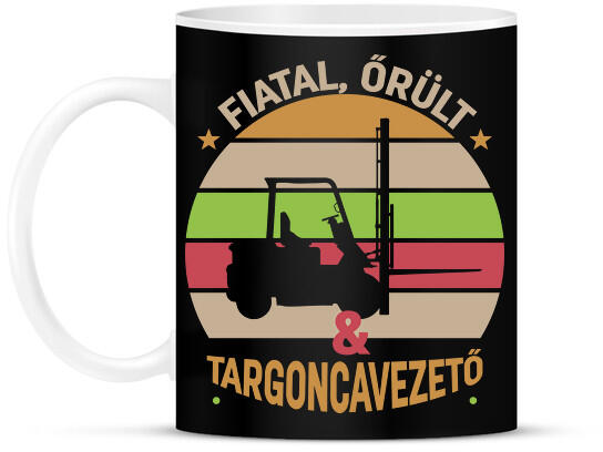 printfashion Fiatal, őrül és targoncavezető - Bögre - Fekete (13072624)