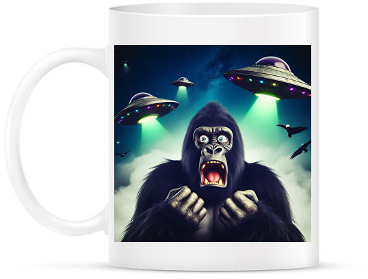 printfashion Fura cuki ijedt gorilla - Retro UFÓ invázió - Bögre - Fehér (15264392)