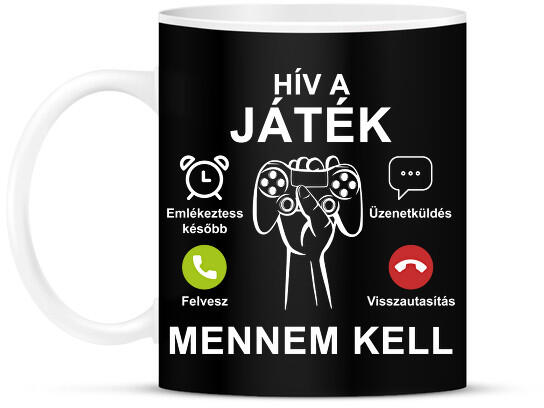 printfashion Hív a játék mennem kell - Bögre - Fekete (7459386)