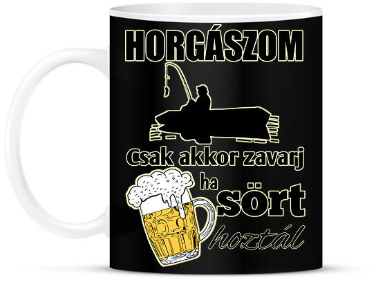printfashion Horgászom csak akkor zavarj ha sört hoztál - Bögre - Fekete (12960411)