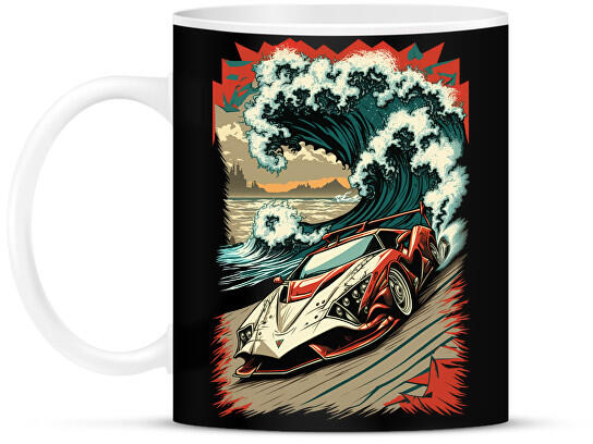 printfashion Hot Rod versenyautó hullámokkal - Bögre - Fekete (13207813)