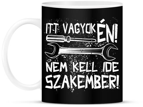 printfashion itt vagyok én nem kell ide szakember fehér - Bögre - Fekete (17195158)
