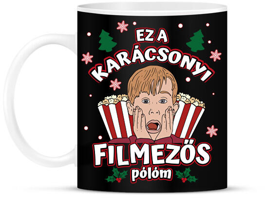 printfashion Karácsonyi filmezős póló - Bögre - Fekete (14915821)