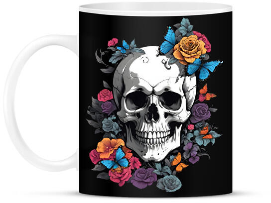 printfashion koponya pillangókkal és virágokkal - Bögre - Fekete (15642337)