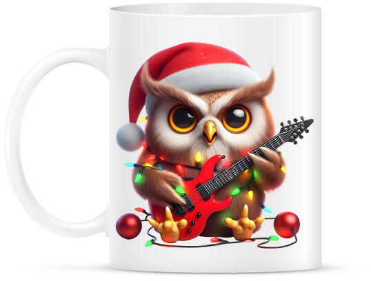 printfashion Vicces karácsonyi gitáros rocker party bagoly - Bögre - Fehér (15260445)