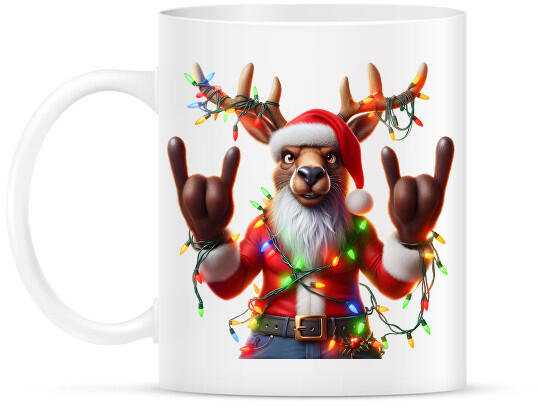 printfashion Vicces karácsonyi rocker party rénszarvas / szarvas - Mikulás ruhában - Bögre - Fehér (15220348)