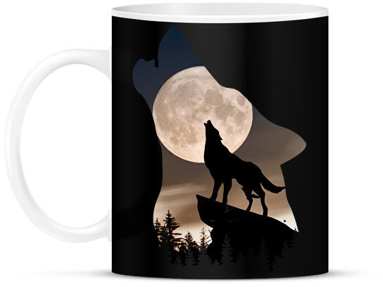 printfashion Vonyító farkas - Bögre - Fekete (13922255)