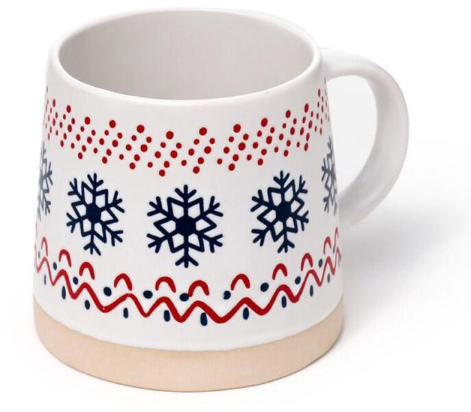 Kortyolj bele kedvenc italodba igazi téli hangulatban ezzel a stílusos hópihés kőkerámia bögrével ! A fehér alapon kék hópelyhek és piros ünnepi minták díszítik, így minden egyes kávé, tea vagy forró csoki még meghittebb élményt nyújt. A 420 ml-es űrtartalom tökéletes egy kiadós forró italhoz, a kőkerámia anyag pedig tartós és elegáns megoldás a mindennapokra és az ünnepi időszakra egyaránt. Mosogatógépben és mikrohullámú sütőben is használható, így nemcsak szép, hanem praktikus választás is. Termékjellemzők: