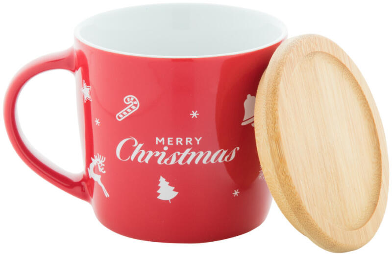Magas minőségű kerámiabögre karácsonyi mintával és bambusz alátéttel, 370 ml. Kraft papír dobozban szállítjuk.