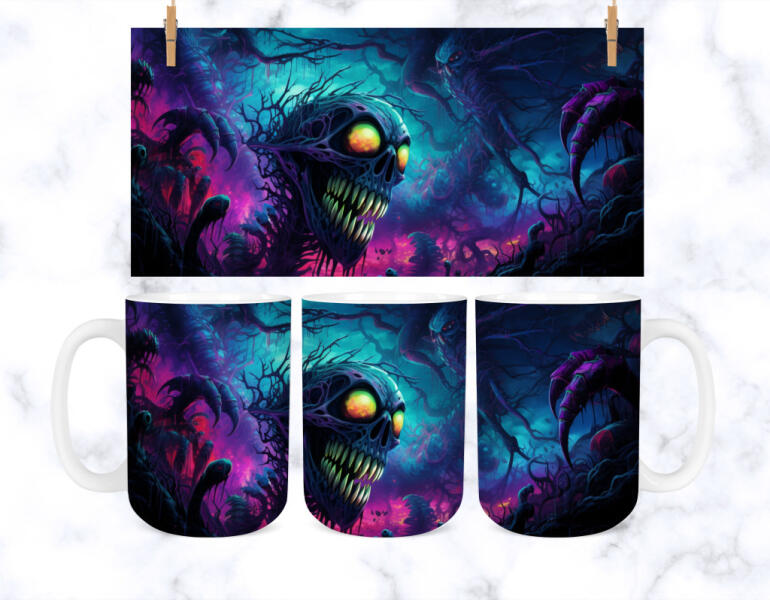 Halloweeni horror kerámia bögre - 3dl Fehér alapú kerámia bögre halloweeni mintával, 3 dl űrtartalmú. A képernyőn látható színek kissé eltérhetnek a valóságtól. Mérete: 9 cm magas, 8 cm átmérőjű Mosogatógépben mosható, de a kézi mosást javasoljuk, hogy a színek sokáig élénkek, szépek legyenek Fehér színű karton dobozba csomagolva küldjük.