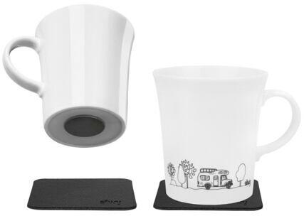 Silwy porcelán mágneses bögrék alátéttel A Silwy porcelán mágneses bögre elegáns kialakításával és a véletlen felborulás elleni okos megoldással nyűgözi le Önt. A beépített mágnesnek és a speciális alátétnek köszönhetően szilárdan a helyén marad, akár otthon, akár a kempingben vagy a hajón tartózkodik. Kiválóan alkalmas szabadtéri étkezésekhez, ahol gyakran hiányzik egy stabil felület az ital letételéhez. A Silwa bögrével azonban bárhol és bármikor biztonságos körülményeket teremthet. A Silwa porcelán mágneses bögre főbb jellemzői: A bögre alján beépített mágnes és egy speciális alátét biztosítja a bögre stabilitását, és megakadályozza a bögre felborulását. A bögrék kiváló minőségű porcelánból készülnek, ami hosszú élettartamot biztosít. A Silwa bögre csomag tartalma: 2 x mágneses bögre 2 x speciális alátét A bögrék paraméterei: darabszám a csomagban: 2 db szín: fehér / fehér nyomtatással anyag: porcelán térfogat: 270 ml magasság: 11 cm átmérő: 9 cm össztömeg: 350 g csomagolási méret: 23 x 14 x 11 cm
