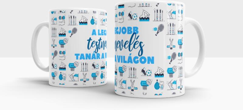 3 dl-es bögre 'A legjobb testnevelés tanár' felirattal.