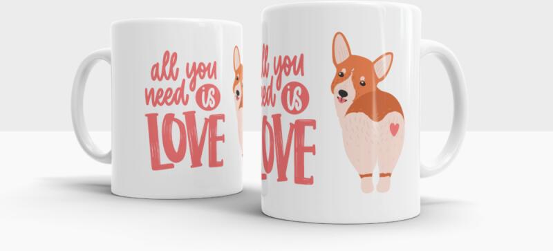 3 dl-es corgi kutyás bögre 'All you need is love' felirattal.