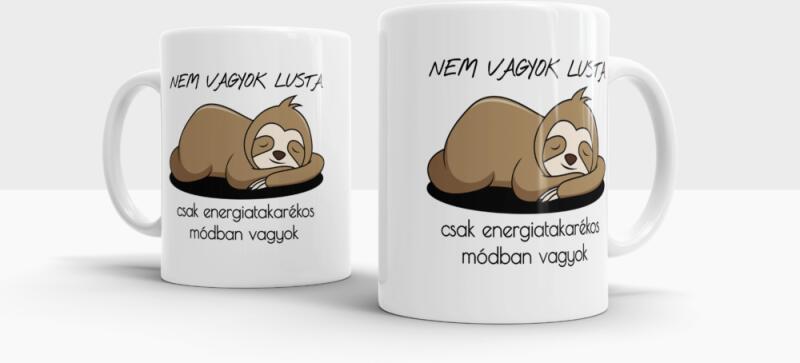 3 dl-es lajháros bögre 'Nem vagyok lusta, csak enegriatakarékos módban vagyok' felirattal.