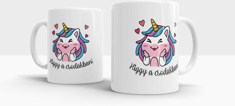 3 dl-es unikornisos kerámia bögre 'Higgy a csodákban felirattal'.
