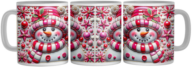 Színes Porcelán Hóember - 3D Mintás Bögre (662351)