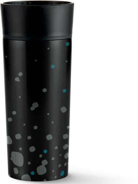 To-Go kávésbögre, hibrid fekete Szín: Fekete bögre szürke és petrolkék pettyekkel. Anyag: 18/10-es nemesacél Tömítés: 100% szilikon Méretek: Magasság fedéllel: kb. 19 cm Ø fedéllel: kb. 8 cm Magasság fedél nélkül: kb. 15,5 cm Ø fedél nélkül: kb. 7,5 cm Többször használatos bögre, dupla falú, nemesacélbólA kávét és a teát különösen sokáig forrón tartja (és a hideg italokat pedig sokáig hidegen)Egy kézzel nyitható és zárható360°-os ivónyílásA fedél szétszedhető, így könnyen tisztíthatóŰrtartalom: kb. 300 mlMosogatógépben tisztítható (ECO 55° C)