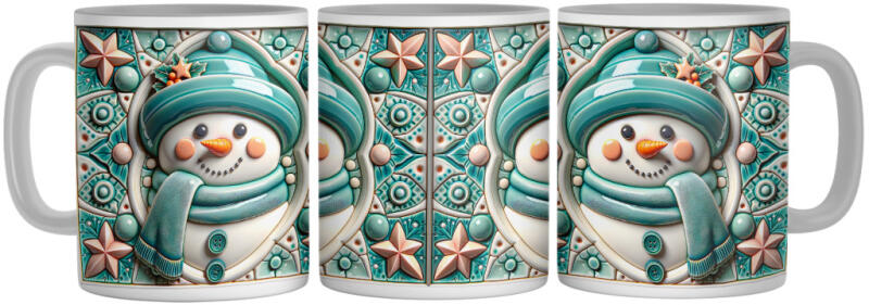 Türkizkék Porcelán Hóember - 3D Mintás Bögre (207225)