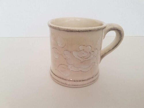 Vanilia Domború mintás teásbögre egyenes, virágos natúr, kerámia, kézzel festett 3, 5dl (V-K-31-07-03)