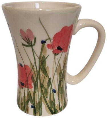 A(z) Tele virágos hosszú bögre, pipacs, kerámia, kézzel festett 5dl egy stílusos és igényes darab kerámia anyagból készült . A termék a(z) Vanilia Kerámia márka kínálatából származik , eredeti származási helye: Magyarország.