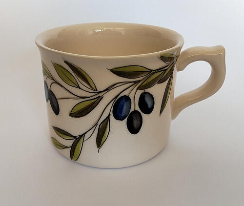 A(z) Violin olajbogyós óriás bögre, kerámia, kézzel festett 5dl egy stílusos és igényes darab kerámia anyagból készült . A termék a(z) Vanilia Kerámia márka kínálatából származik , eredeti származási helye: Magyarország.