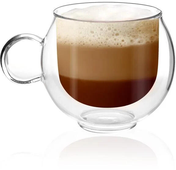A termék kézzel készül, a legmagasabb minőségű boroszilikát üvegből, amely ellenáll mindenféle mattulásnak és hőhatásnak. A dupla falnak köszönhetően a bögre hosszabb ideig megőrzi az ital kívánt hőmérsékletét, valamint véd az égési sérülések ellen is . További előnye, hogy az italok fantasztikusan mutatnak a bögrében. A poharak ergonomikus formája megakadályozza, hogy kicsússzanak a kezünkből, még akkor is, ha nem a fogantyúnál fogva tartjuk a poharat. Tökéletes forró és hideg italok tálalásához egyaránt. A poharak minimalista, egyszerű formájuknak köszönhetően jól illeszkednek más, modern és klasszikus étkészlethez. Minden asztal vitathatatlan dísze vagy tökéletes, stílusos ajándék. Leírás: Űrtartalom: 220 ml