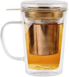 Vialli Design AMO 9378 duplafalú üveg bögre teaszűrővel 300ml