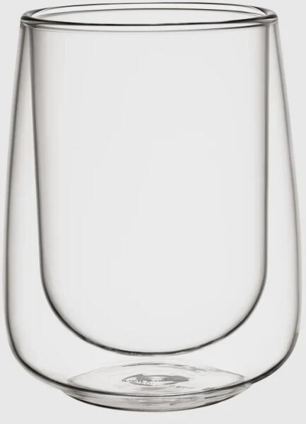 Dupla falú, két személyes, Villeroy & Boch fül nélküli 360ml-es latte macchiato szett Az Artesano Hot&Cold Beverages kollekció a Villeroy & Boch kifinomult formatervezését ötvözi a modern igényekkel, hogy minden italélményt tökéletessé tegyen. A kiváló minőségű boroszilikát üvegből készült poharak és bögrék, valamint a sorozathoz tartozó kanna rendkívüli hőállóságuknak köszönhetően egyaránt ideálisak forró és hideg italokhoz. A kollekció minimalista, időtálló stílusa tökéletesen illeszkedik bármilyen enteriőrhöz, míg a dupla falú kialakítás nemcsak látványos, hanem praktikus is: segít megőrizni az italok hőmérsékletét, miközben a külső fal hűvös marad a biztonságos fogás érdekében. Legyen szó reggeli kávéról, frissítő jeges teáról vagy egy aromás forró csokoládéról, az Artesano Hot&Cold Beverages kollekció minden pillanatot stílusossá és élvezetessé varázsol. Mosogatógépben tisztítható, így a kényelem és a minőség tökéletes összhangját nyújtja a mindennapokban és különleges alkalmakon egyaránt. A kollekció 250ml-es fül nélküli dupla falú pohár szettje tökéletes választás azok számára, akik szeretnék a különlegesen rétegelt kávézás minden pillanatát kiélvezni, miközben gondolatban elmerengenek Itália messzi szépségein...  Kortyolja Ön is kedvenc olaszos hangulatú forró italát stílusosan Villeroy & Boch dupla falú pohárból kortyolva.