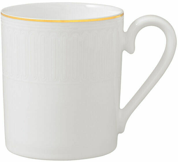 Arannyal futtatott, dombornyomott Villeroy & Boch bögre Egyszerre hagyományos és modern - a Château Septfontaines kollekció egyedülálló domborzatával, a fényes porcelánfelület és a matt díszítés izgalmas játékával, valamint a finom 20 karátos arany kivitelezéssel Önt is magával ragadja. A Château Septfontaines túlmutat a klasszikus értelemben vett étkészleten, hisz a kávézás és teázás szerelmesei számára is lehengerlő választékkal rendelkezik. Néha egy hosszabb tejeskávé vagy tea jelenti a feltöltődést, ami a sorozat bögréjéből fogyasztva nem csak a testnek, de a léleknek is valódi felüdülést ígér. A kényelmes fogású, 0,23l űrtartalmú bögre hamar az Ön szívét is megdobogtatja és jóleső módon fogja kortyolni kedvenc forró italait - valóban luxus stílusban. Kényeztesse érzékeit!