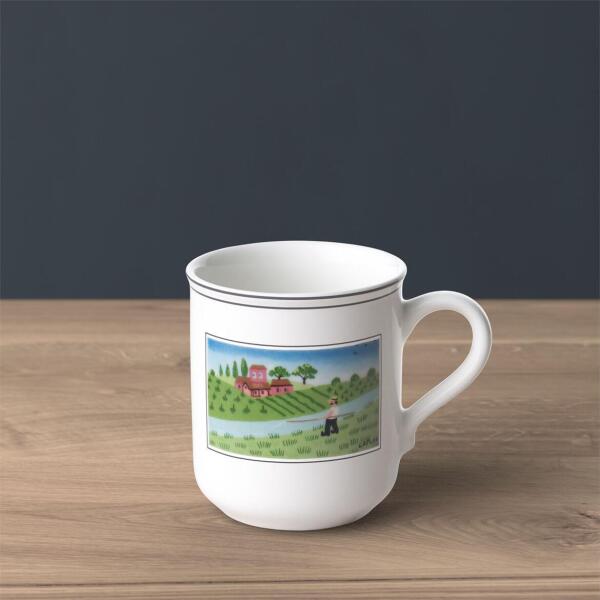 Horgász mintás porcelán bögre A Villeroy & Boch Design Naif kollekciója egy igazán bájos készlet, mely a szerethető tájképekkel és a vidéki élet motívumaival teremt páratlan miliőt az étkezőasztalnál. A kollekciót a korzikai művész, Gérard Laplau tervezte, aki nagyban hozzájárult ahhoz, hogy a naiv festészet világszerte elismert művészeti stílus legyen. A termékcsaládhoz tartozó, egyik oldalon halász, másik oldalon kakasos mintájú porcelán bögrét a vonzó dekor mellett a praktikus fül teszi igazán barátságossá. Kortyolja stílusosan kedvenc kávéját, kakaóját vagy teáját ebből a darabból és lelje örömét a látványban is minden használatkor!