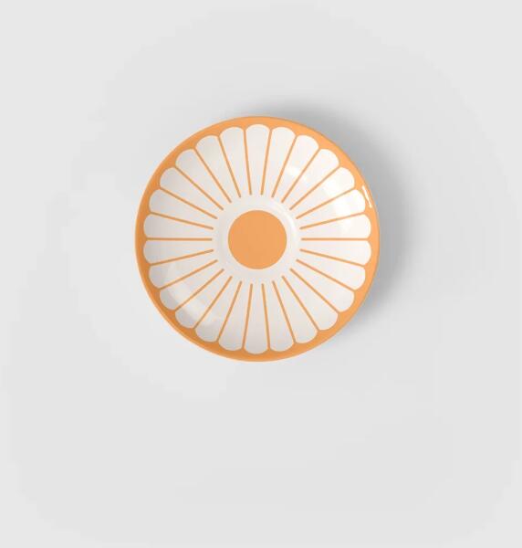 Vidám kávéélmény napfényes hangulatban a Fleur Soleil eszpresszós csészealjával A Fleur kollekció a vidám, bohém, kissé hippis és retró stílus megtestesítője. Négy különleges színárnyalatban érhető el – a zöld Fleur Vert, a kék Fleur Bleu, a narancssárga Fleur Soleil és a rózsaszín Fleur Cassis –, amelyek szabadon kombinálhatók, így minden étkészlet és kávés készlet igazán egyedivé válhat. A kollekció darabjai prémium minőségű porcelánból készülnek, ötvözve a modern frissességet a tartóssággal. A Fleur Soleil eszpresszós alátét a maga 11,7cm-es méretével a kollekció egyik bájos darabja, amely tökéletesen kiegészíti a hozzá tartozó csészét. Napfényes, narancssárga árnyalata azonnal jókedvet sugároz, miközben elegáns formavilágával megőrzi a klasszikus kávézás hangulatát. Virágos mintázata játékosságot és harmóniát kölcsönöz, így minden kávészünet különleges pillanattá válik. Praktikus kialakítása megóvja az asztalt a kávéfoltoktól, stabil alapot biztosít a csészének, és elegendő helyet nyújt egy apró édességnek is. Mosogatógépben egyszerűen tisztítható, valamint mikrohullámú sütőben is biztonságosan használható, így a mindennapi életben is könnyedén megállja a helyét. Az alátét önmagában is dekoratív, de igazán stílusos akkor válik, ha a kollekció többi darabjával kombinálva kerül az asztalra. Ez az apró, mégis látványos kiegészítő ideális választás mindazok számára, akik a kávézás élményét szeretnék színesebbé és különlegesebbé tenni. Tegye teljessé eszpresszós készletét a Fleur Soleil alátéttel, és élvezze, ahogy minden korty új színt visz a mindennapokba!
