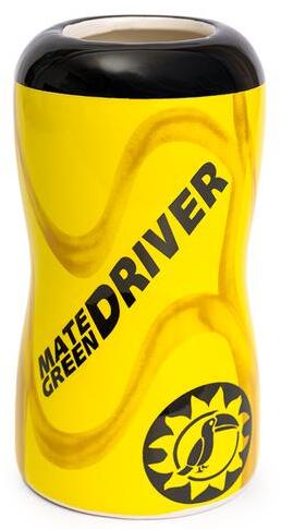 Kerámia Mate Green DRIVER kb. 200 ml űrtartalmú és 13 cm magas. Belül mázas, kívül sárga, logóval és felirattal. Praktikus, a legtöbb tartóhoz és bombillához illik. Tökéletes a mindennapi yerba mate fogyasztásra.